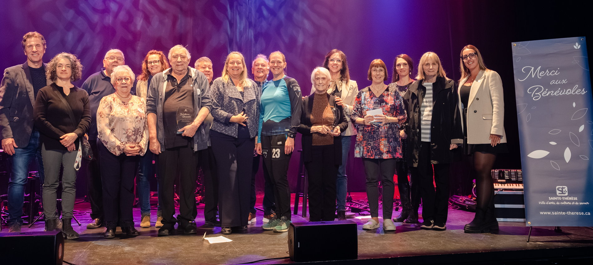 Dans le cadre de la Semaine de l’action bénévole, la Ville de Sainte-Thérèse a tenu le 21 avril sa Soirée reconnaissance des bénévoles au Cabaret BMO Sainte-Thérèse, lors de laquelle le spectacle de la chanteuse Marie-Denise Pelletier a été présenté à près de 150 bénévoles.